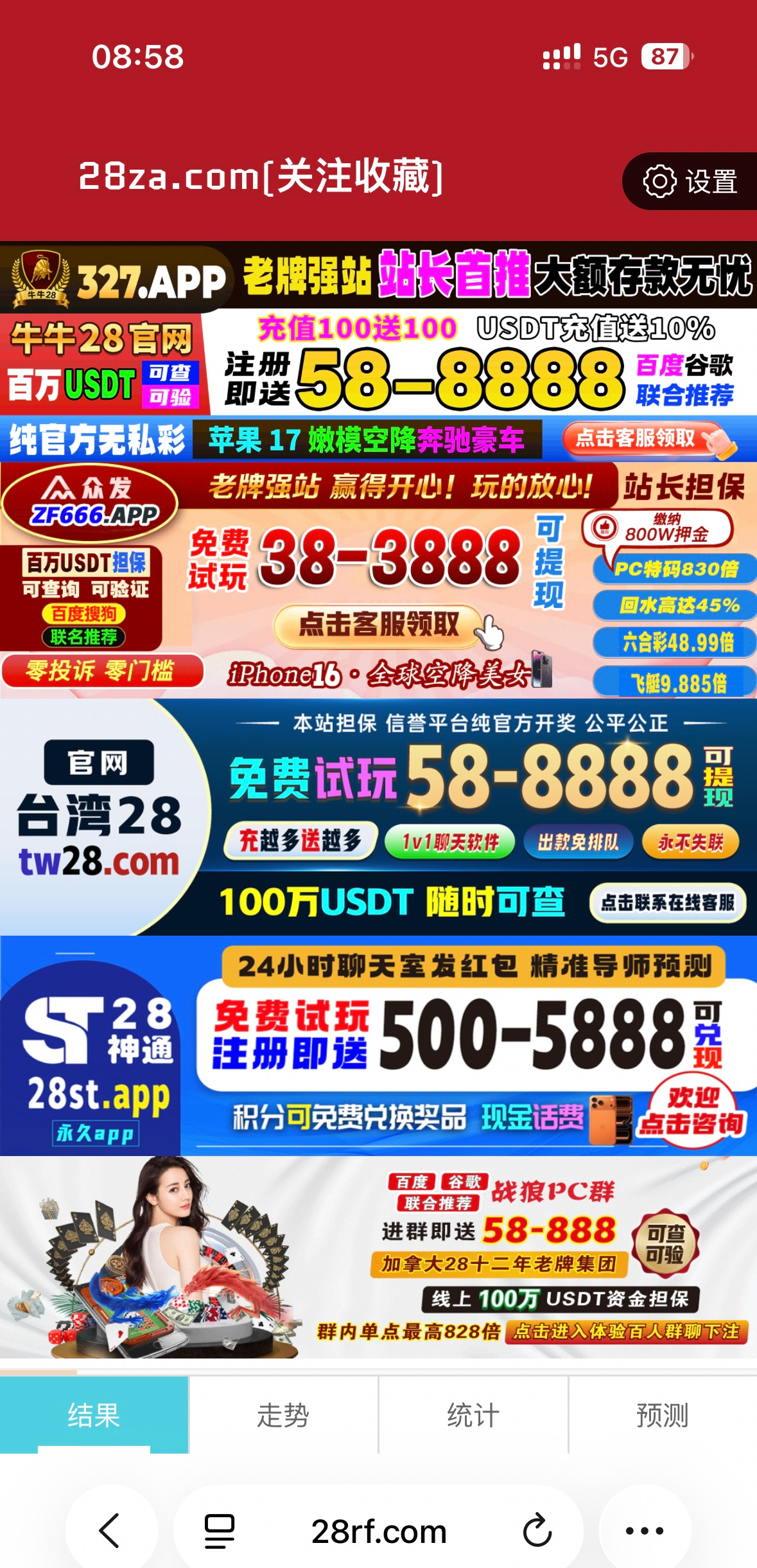 新人注册就送38从这个开奖网站进去下面有链接,里边的注册送都可以去试试,我下了900,下注规则有点麻烦嫌弃麻烦的别去了,人多可能会黄 28za.com