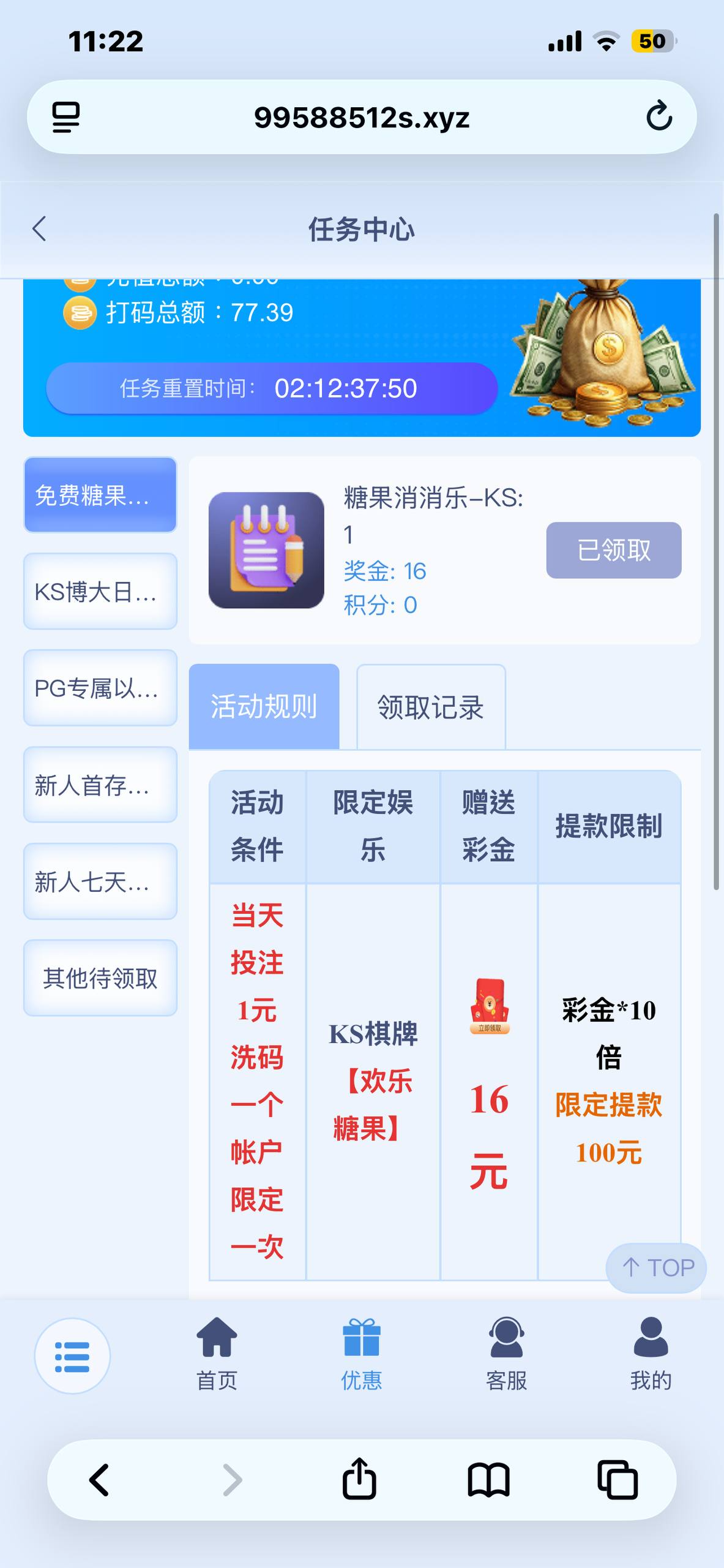 拿返水投1块钱就能领16元,只能打欢乐糖果,一注两块有水,提了100,梦想有号的可以去搞一波