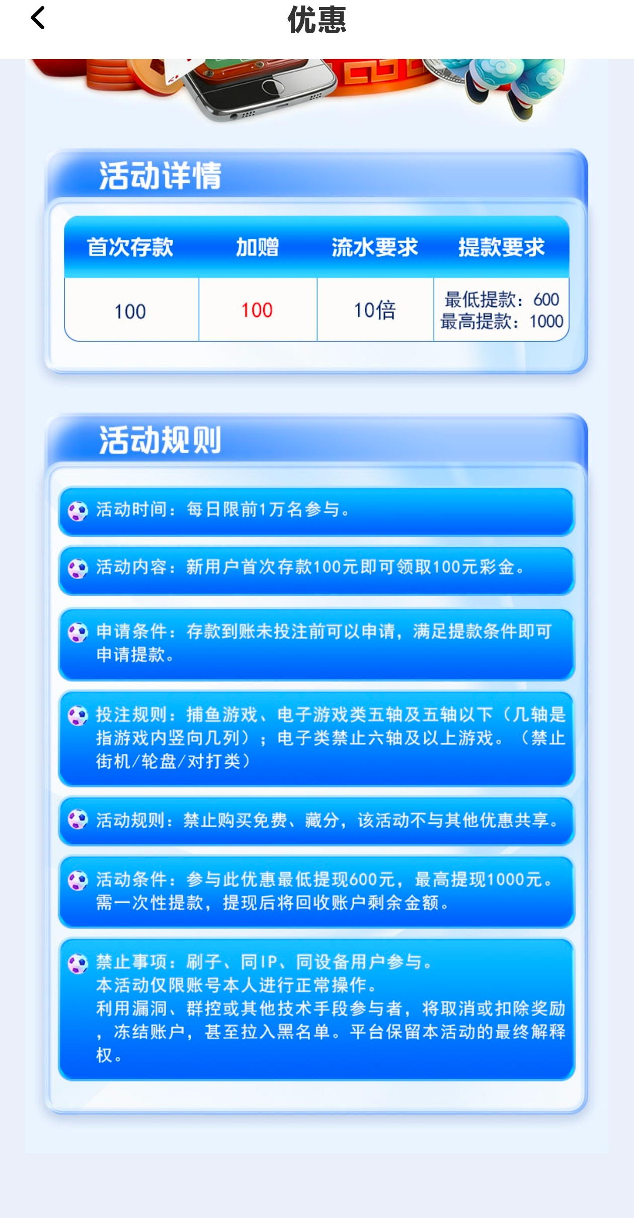 只能PG电子游戏 不可买免费 28彩金流水1倍 需充值盈利对等金额3倍流水 最高提现288。需要绑定银行卡信息